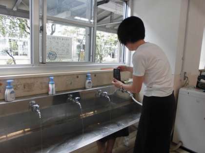 9月14日(水)の午前中に,飲料水の定期検査を行いました。手洗い場や水道設備の管理の確認,水質の検査をしました。子どもたちが安心安全に過ごせる環境づくりのために,学校薬剤師の先生には水質や教室内の空気検査,照度検査などでお世話になっています。