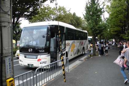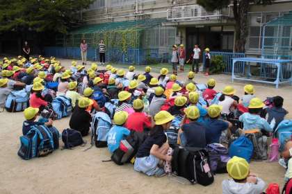 背負った子どもたちは,元気にバスに乗り込み,予定