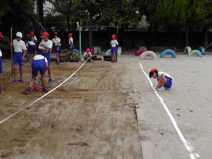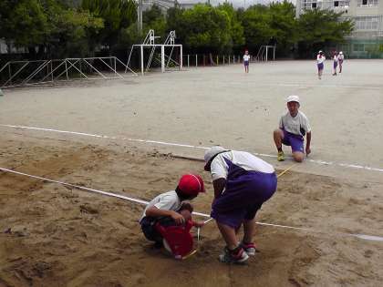 走り幅跳びの学習が進むにつれ,準備や計測などのことについても素早くできるようになってきています。