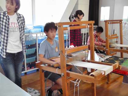 機織りの体験では,手を足を使って,慎重に織っていました。