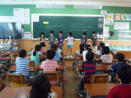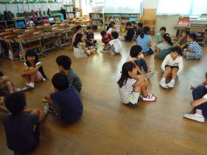 お店へのインタビューをするために,各グループの初顔合わせをしたり,インタビューを考えたりしています。子どもたちは,とてもはりきっています。グループは,4〜5人で組んでいて,グループの中に,同じクラスのお友だちはほとんどいません。最初はドキドキしていた子どもも,今ではとても楽しみにしているようです。