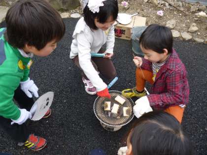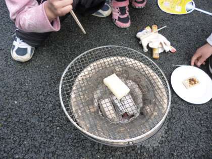 焼き立てのおもちを食べてみると…それはそれはほっぺたがおっこちそうなほど美味しかったようです。嬉しそうにおもちを頬張る子どもたちの姿を見て,きっと昔も七輪を囲んでたくさんの笑顔があったのだろうな,と感じました。