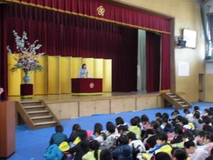 4月10日(月)新しく着任された教職員を迎えた着任式の後, 始業式を行いました。式の中で, 学校長から,「『みんなの学校』を『すてきな学校』『みんなが気持ちよく過ごせる学校』にするために, 『笑顔で気持ちよくあいさつをすること』『ふわふわ言葉を使うこと』『そうじをしっかりがんばること』を大切にしましょう。」というお話を聞きました。みんなで心を一つにして「すてきな学校づくり」に取り組んでいきたいと思います。