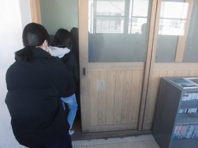 避難訓練の前に、総合的な学習の時間と関連して、右京消防署梅津出張所の方の協力のもと煙体験を行いました。訓練用の煙ですが、煙は視界が悪くなること、煙は上にいくことなどを体験することができました。防災について考えるひとつのきっかけになったようです。