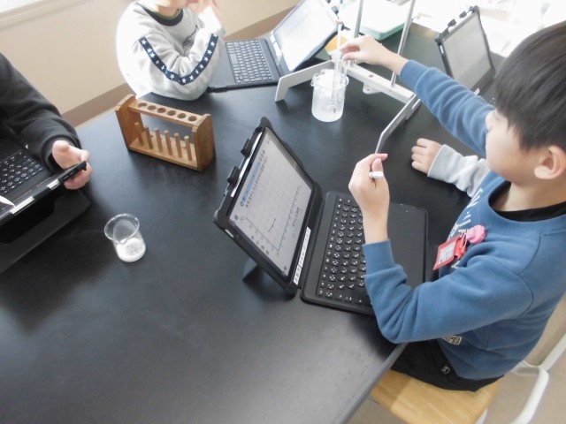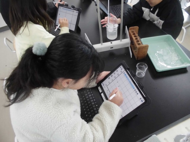 水を冷やし続けると、温度が下がってやがて凍ることは知っている子ども達。しかし、何度で凍るのか、どのように凍るのか、その間の温度はどうなるのか、詳しくは知らないことに気づきました。実験をすることで、新しい発見がたくさんあったようです。