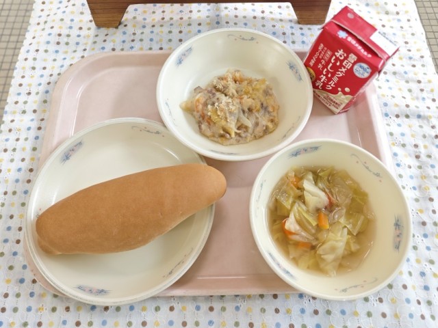 今日は今年度最後のパン献立です。ペンネの豆乳グラタンは子どもたちに大人気の献立で、パンにもとっても良く合います。