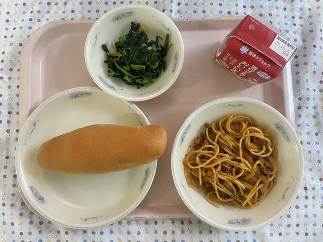 今日から給食が始まりました。今日は1年生の入学をお祝いする献立です。