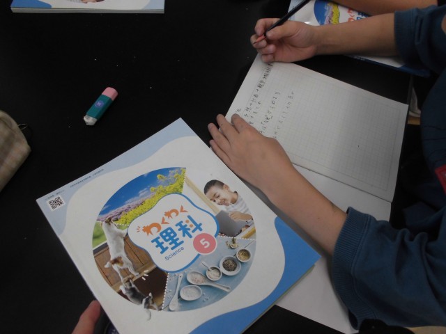 今年度初めての理科の授業。理科の授業の流れをおさえ、理科の考え方をしてみました。理科の教科書の写真から「なぜ」「どのように」を見つけ、みんなの意見を交流することで、学びが深まっていました。