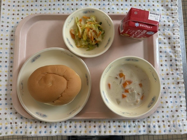 今日は水曜日、パンの日です。バターうずまきパンは、バターの風味が豊かで子どもたちからも人気のパンです。
