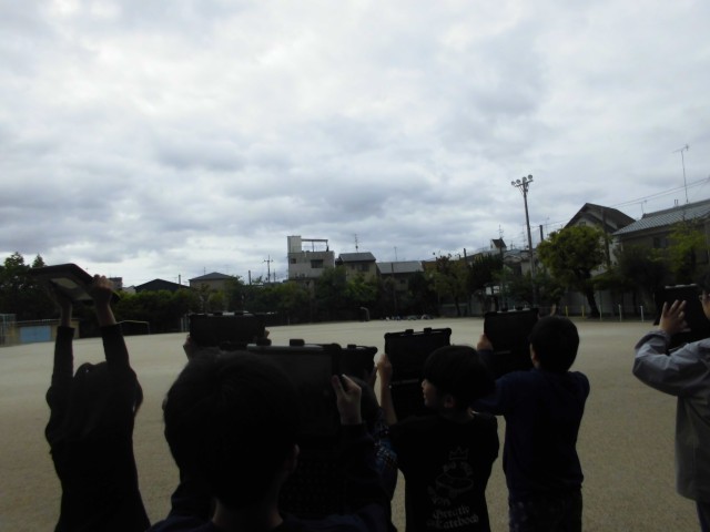 午前中と午後の雲の様子を観察しました。雲の色や形、動きを観察し、天気の変化と関連付けることができるように学習していきます。