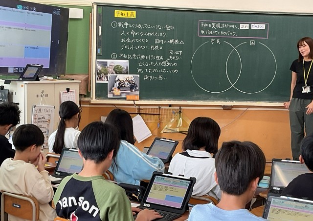 社会科では、日本国憲法の3つの原則について学習しています。今日は平和主義について学び、一人の国民として深く考えている姿がたくさん見られました。