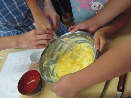 保護者の方々といっしょになって,ホットケーキづくりをしました。