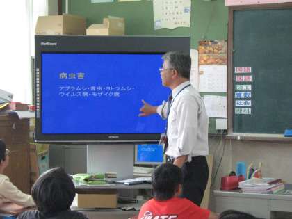 校長先生から,ダイコンの種類・植え時・かかる病気・歴史について教えていただいたあと,畑に 植えました。おいしいダイコンが出来ますように!