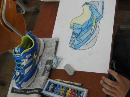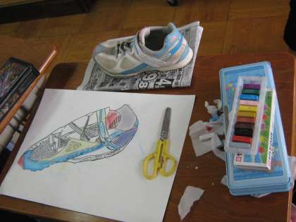 自分のくつをまじまじとながめ,細かい部分までよく見て絵に表しました。