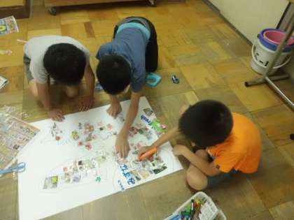 社会の学習で,スーパーで売られている野菜やスーパーのチラシに載っている食料の産地調べをしました。