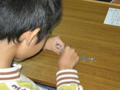 自立活動で、指先の訓練としてネジ回しに取り組んでいます。なかなか難しいけど、頑張って取り組んでいます。