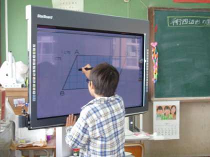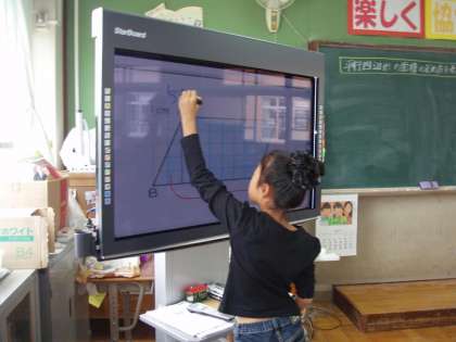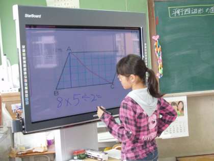 電子黒板に書き込みながら,自分の考えを発表しました。