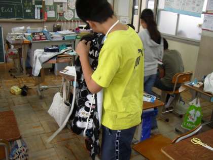 仕上げようと,頑張っていました。早く着て,調理実習をしてみたいですね。