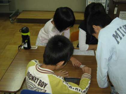 中間休みに、みんなで恐竜カードで遊びました。どんなルールかというと、裏返っているカードをめくって「恐竜です」と書かれていればセーフ、「恐竜ではありません」とかいてあればアウトになります。とても簡単で面白かったです。