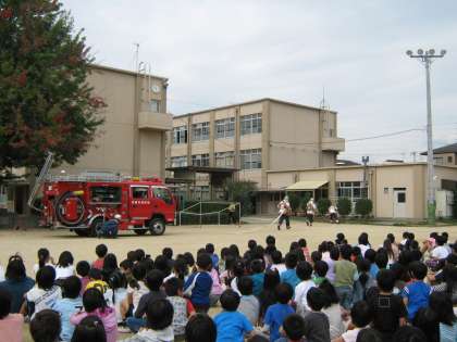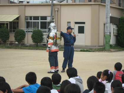 全校のみなんさんが,真剣に取り組みました。右京消防署の署員の方にほめていただきました。