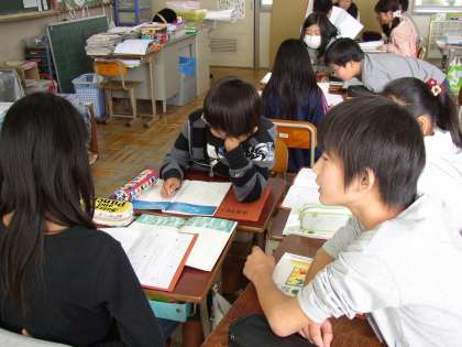 『どうして,作者は「やまなし」という題を付けたのだろう』とういことを班ごとにいろいろ意見をだして,司会がその意見をみんなに発表してくれました。