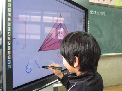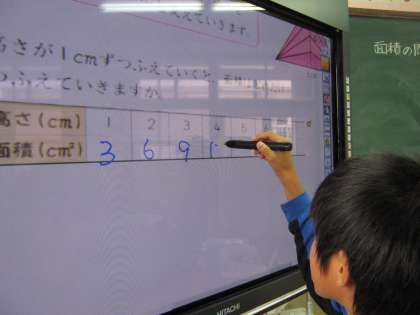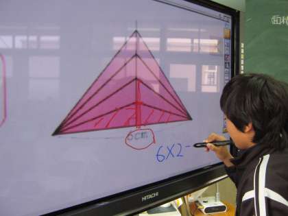 この日は,底辺は同じ長さで,高さが1センチ高くなる面積はどうなるのかを考えました。