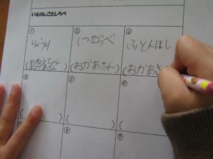 生活科の学習で「家の仕事」はどんな仕事があるのかを考えました。買い物・洗濯・皿洗い・料理・・・いろんな仕事があることに気付きました。