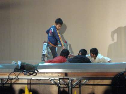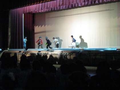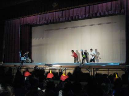 劇の中でもっとももりあがるシーン、ルパンたち発見!そして追せき劇、最後に無事逮捕のシーンです。会場も大きな声で笑ってくれたり、応援してくれたり、とてもうれしかったです。