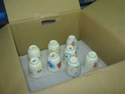 出来上がった作品は、みんなの作品と一緒に割れないようにていねいに段ボールにつめてもらいました。3週間後、またあえるのを楽しみにまってるよ。