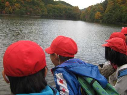 大きな宝ヶ池では,みんなで「ヤッホー」と呼びかけていました。