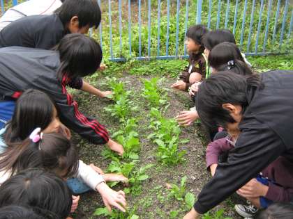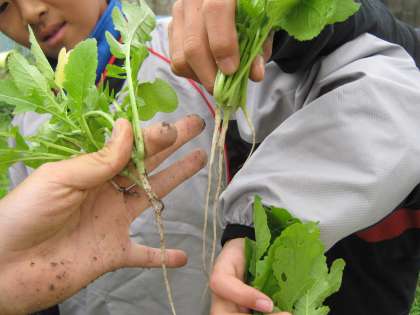 10月に植えたダイコンを間引きました。小さいのに味も,香りもダイコンです。