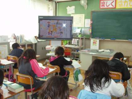漢字の読みや,場面の様子を確認するときに電子黒板を使い,