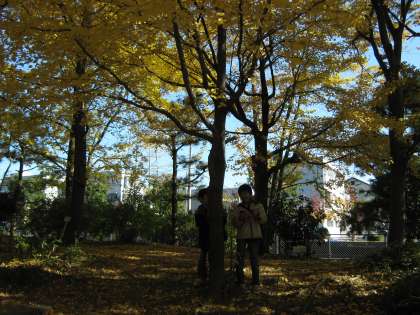 あまりにきれいだったので、いちょうの木の下で記念撮影をしました。公園の木々たちもずいぶん色付いてきています。