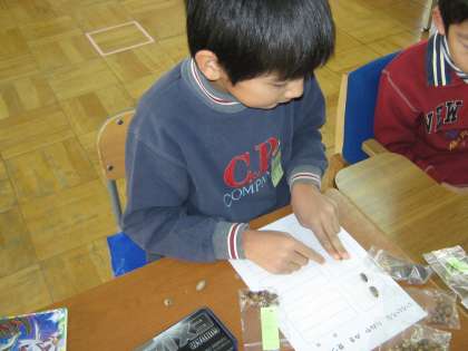 ひろってきたドングリで、たねシートを作りました。3種類のドングリをひろってきたので、たくさん作ることができました。