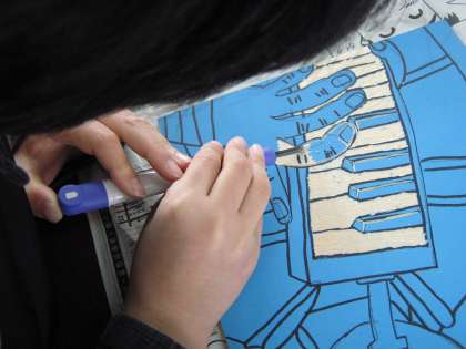 昨日,電子黒板を見ながらどこを彫れば効果的かを考えました。