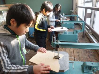 図画工作科の学習で,電動糸のこぎりに挑戦しています。木の板を切り,パズルを制作中です。作った作品は校内作品展で展示いたします。どうぞご覧ください。