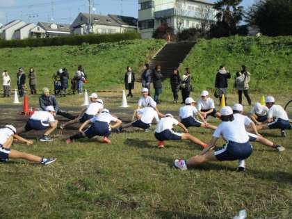 朝方の雨により開催が危ぶまれましたが,本日マラソン大会が開催されました。低学年・高学年に分かれ,学校で開会式を行った後,桂川の河川敷まで歩いて行きました。河川敷に着くと学年ごとに準備運動を行い,いよいよスタートです。スタートのころには,青空が広がり寒さも和らぎ,気持ちよく走ることができました。