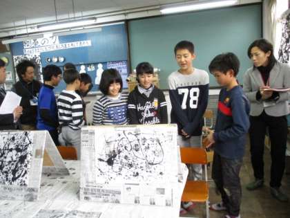 6年生は「和!墨の力」という題材に取り組みました。にじみ・かすれ・濃淡など絵具とは一味違う墨のよさを感じ,表しながら自分なりの主題を思い付いていました。活動の終わりには作品を立ててグループで鑑賞しました。
