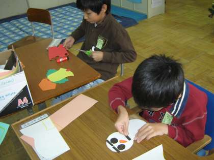今度、3校交流会でクリスマス会があります。今回は、西西で行われるので教室の飾り付けを作っています。たくさん作らないといけないので大変です。