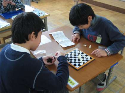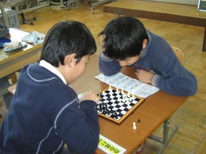 この前6年生がチェスをしていて、今度教えてあげるといっていたので、今日教えてもらうことにしました。実際にゲームをしながら教えてもらいました。さすがにとても強くて、全然歯がたちませんでした。また対戦できるとうれしいです。
