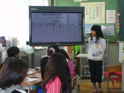 実験後は,班で調べた実験結果を電子黒板で発表しました。