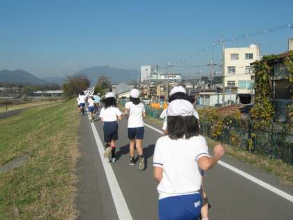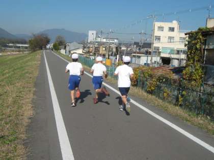 12月10日の西西マラソン大会に向けて,3・4年生で桂川の河川敷へ試走に行きました。とても良いお天気で暖かく,みんないっしょうけんめい走っていました。