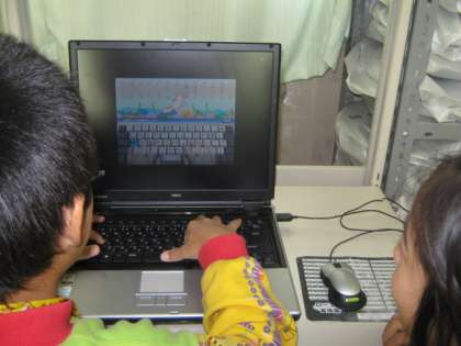 国語でローマ字を学習してきて,いよいよコンピュータでローマ字入力の練習を始めました。ノートではなかなか書けずに苦労していた子どもたちも,1つ1つキーを捜しながら自分の名前を打ち込んでいました。