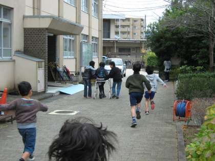 鬼から逃げるときは「歩行器、こっち向けて。」と声をかけたり、鬼の人に「ゆっくりめでお願い。」などと、ずっと付きっきりで遊んでくれたりしました。