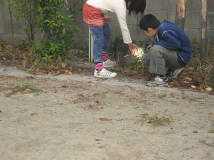 理科の学習です。日なたと日かげの地面のあたたかさや湿り具合を確かめてから,鏡で太陽の光を壁や的に当ててあたたかさを調べました。鏡で光を反射するのはとても楽しいのですが,一ヶ所に集めるのは結構大変。それでも,「だんだんあたたかくなってきた」と,光のはたらきを実感していました。
