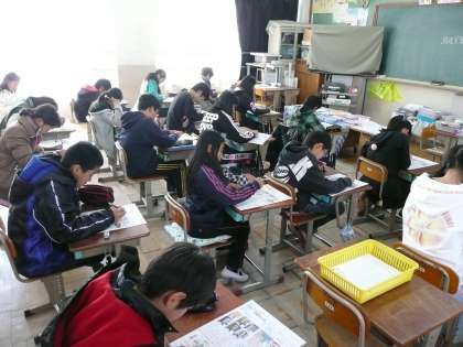 社会のまとめのテストを受けました。まとめなので難しい問題もありますが,頑張って考えています。歴史好きな子が多く,なかなかいい点数でしたよ!