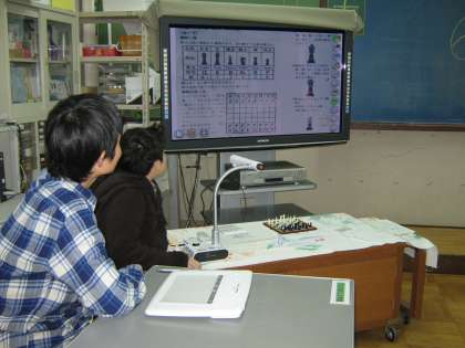 チェスの駒の置き方や名称・動かし方などをみえるもんを使って、説明しています。
