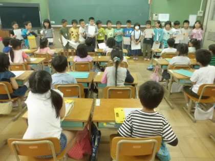 2年生は,優しく「ここは〇〇教室だよ。」と1年生にたくさんの教室を教えてくれました。2年生のお兄さん,お姉さん,ありがとう。