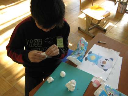 巨匠展に向けて、作品作りをしました。紙ねんどで、テレビのキャラクターを作ります。上手にできるかわからないけど、頑張って作りたいと思います。