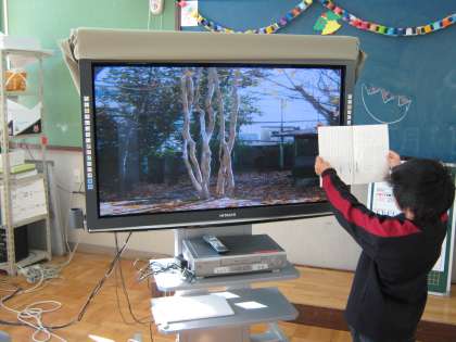 国語の時間に、一本の木を学習しました。西西の森に生えている木と、教科書の木をみくらべました。似ているところや、似ていないところをさがしました。